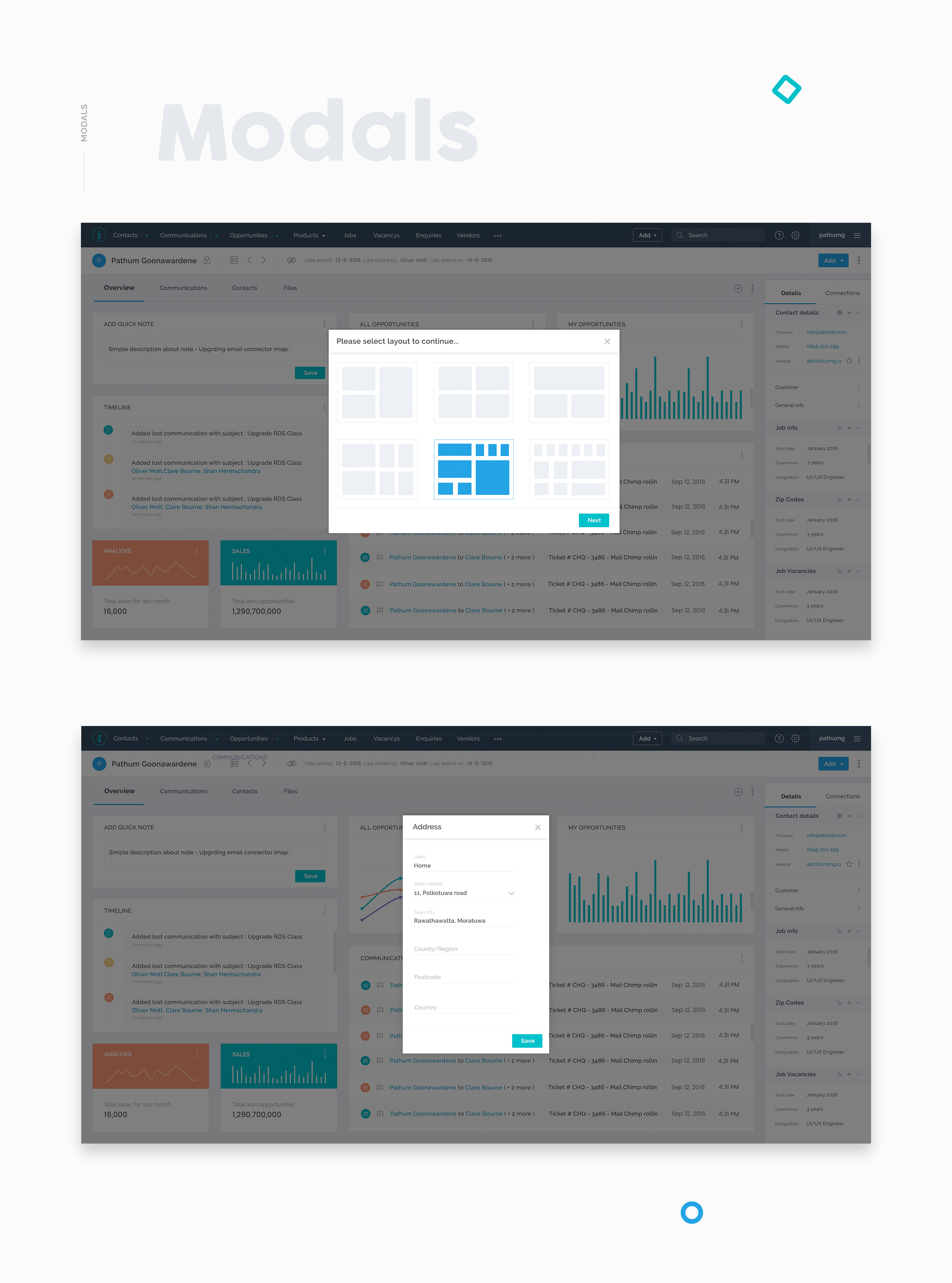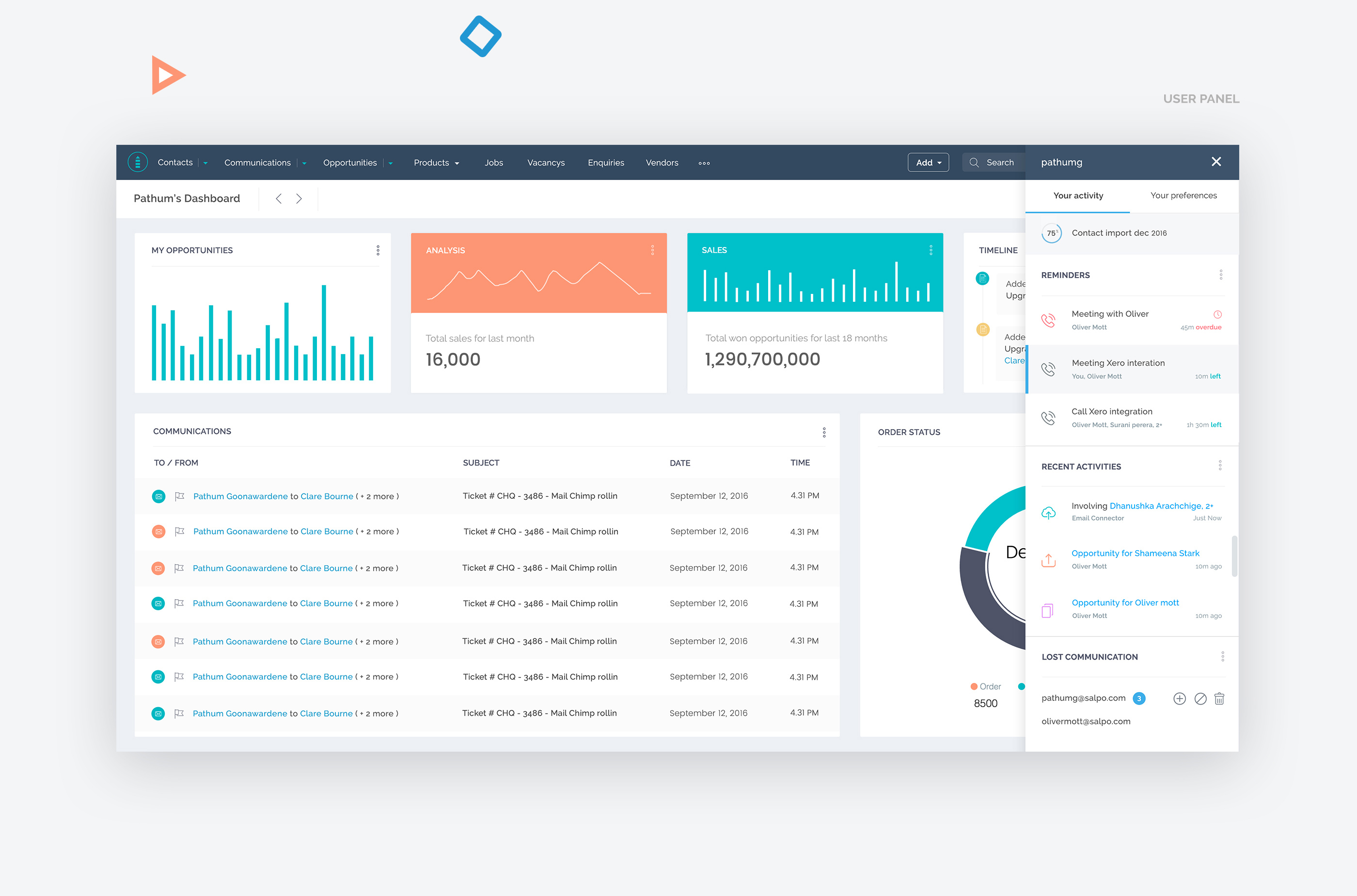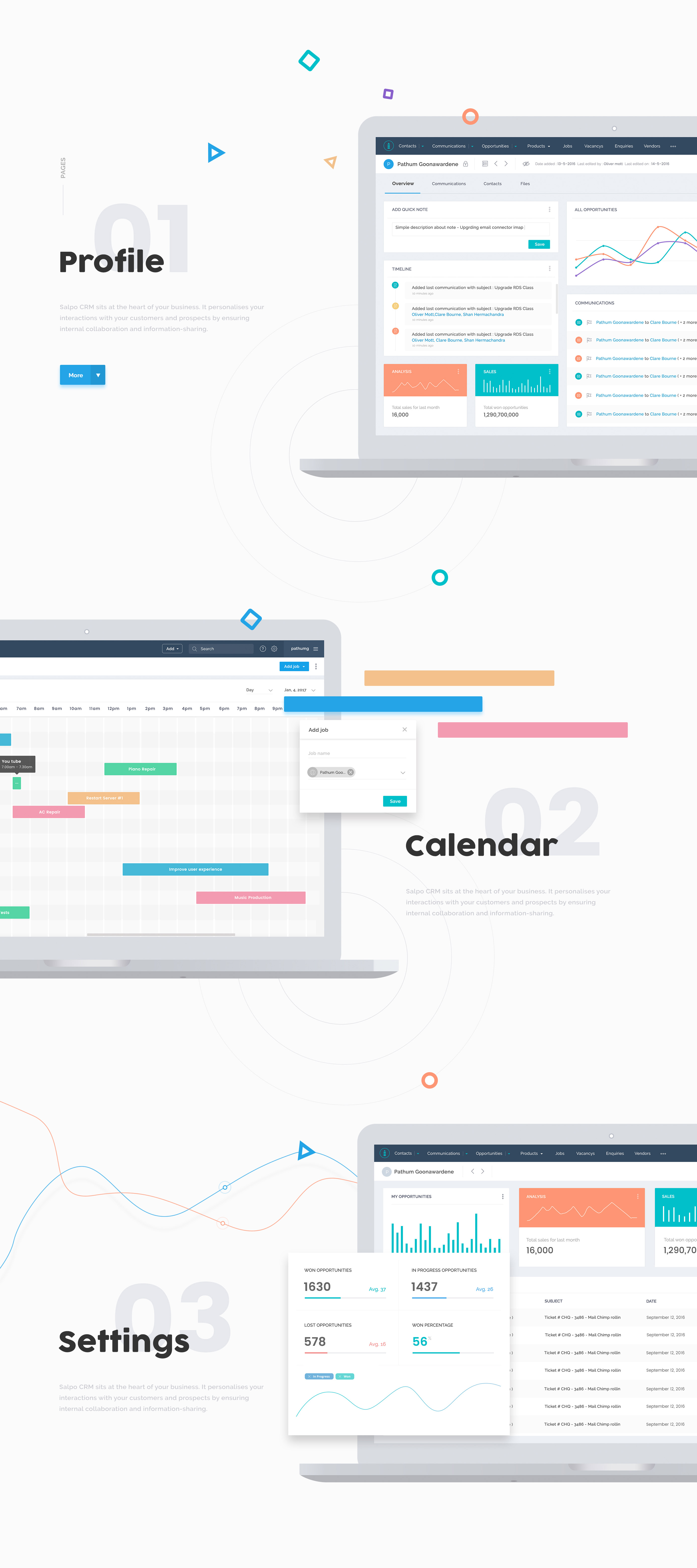 Salpo CRM - Used brighter texts for the interfaces. Overall it looks cool but very calm. Thoughtfully managed the use of shadows, white space, and highlight colors.